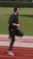 When you have run about 30m then gradually turn this into the full running action as this