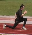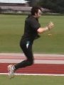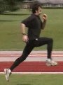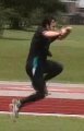 upper and lower legs form and angle of about 90 degrees, jump forwards,