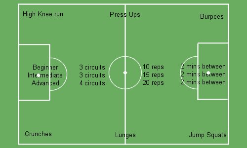 Complete the 6 exercises and immediately jog the rest of the circumference of